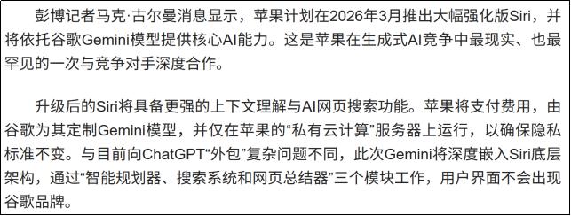 图:近期苹果与谷歌合作新闻资料来源:新浪财经