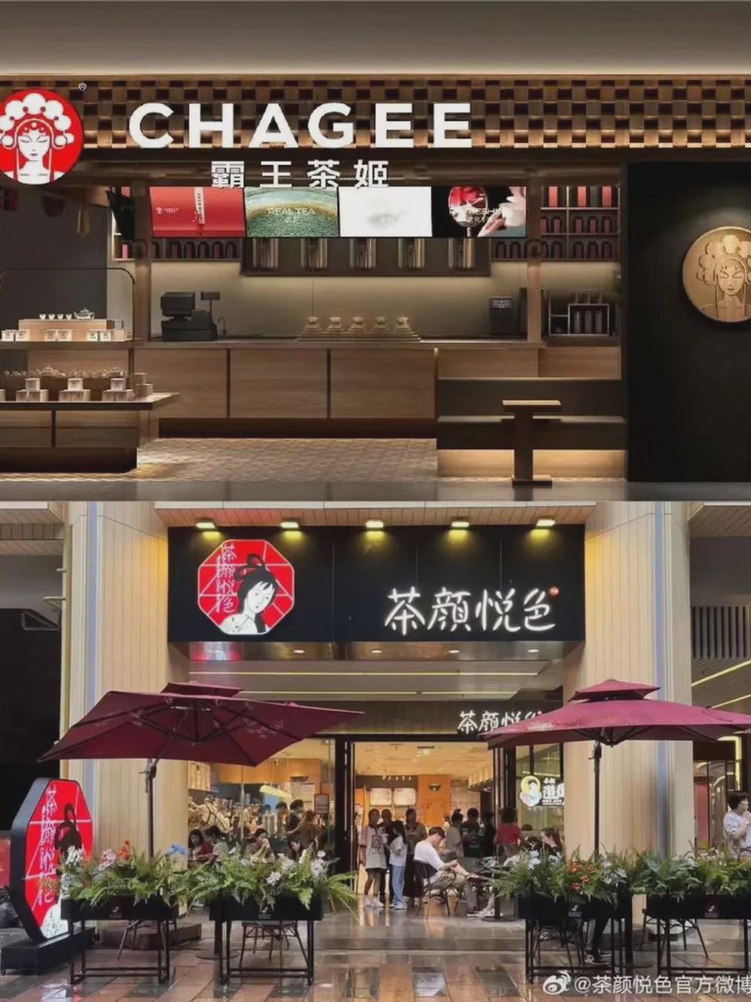 起初,霸王茶姬被锐评,从品牌LOGO到门店风格,甚至产品及品名,都和茶颜悦色很像。