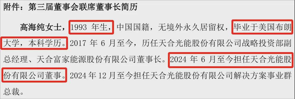 高海纯有着最美“光二代”的称号,今年年初 高海纯担任 天合光能联席董事长。