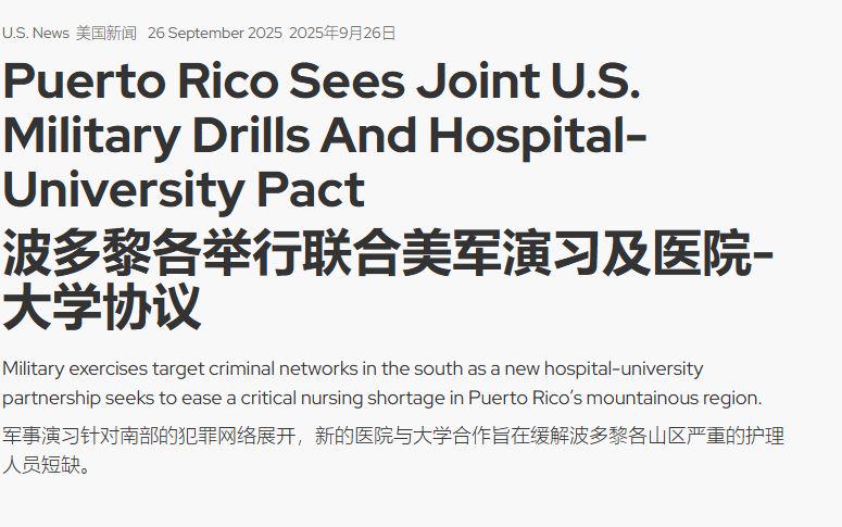 9月26日,在军事演习的同时,美国的大学与波多黎各卡斯塔涅尔综合医院签署合作协议,进行为期两年的临床护士训练。向波多黎各派出大量护士进行实习,并且每年培训至少20名波多黎各的护士。