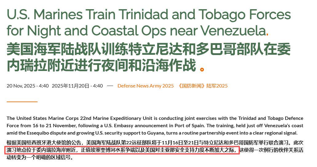 为解决陆军人数不足(占领油田)的问题,美军甚至已经开始训练特立尼达和多巴哥的地面部队在美国空军、海军、精锐部队的配合和指挥下作战,并将之称作“对圭那亚的安全保障”。