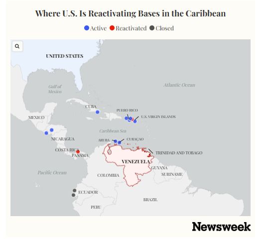 与此同时,美军位于古巴关塔那摩湾、库拉索、阿鲁巴、洪都拉斯、萨尔瓦多和美属维尔京群岛的基地都已经“活跃起来”了。