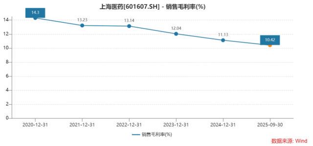 Wind数据显示,2020年—2024年,以及2025年前三季度末,这家公司的销售毛利分别为14.3%、13.23%、13.14%、12.04%、11.13%、10.42%。