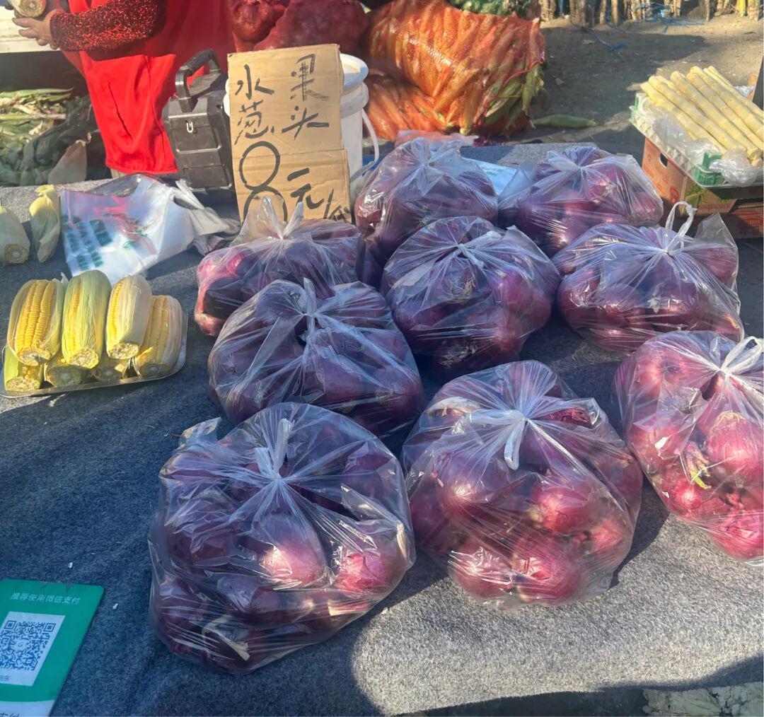 和山姆一样,大集上的瓜果蔬菜也以“量大”创造性价比。在这里可以买到8块钱一大袋的洋葱,每袋接近15颗,价格几乎是生鲜平台的一半;香蕉,20元能买到16到18根,红心蜜柚15元能买到两个,价格同样是生鲜平台的一半。平日习惯了平台送菜到家的年轻人来到这里,就像老鼠掉进了米缸。