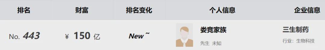 2025年与辉瑞达成的潜在交易总额高达60.5亿美元的双特异性抗体授权合作,更是将公司估值推向新高度。事业的突破,也让娄家财富水涨船高。2025年10月胡润百富榜新鲜出炉,娄竞家族以150亿财富跻身第443位,成为生物医药领域的新贵。