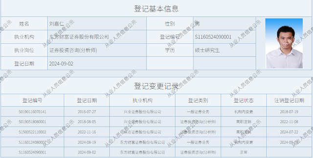 这一人事安排在券商研究所中并不常见,不知此次离任与一年多前的职务变更有无关联。目前在中国证券业协会已查不到周旭辉的在职登记信息,意味着其已从东方财富证券离任,但暂未加入其他券商。