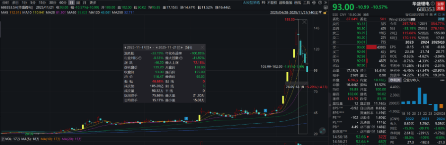 大涨后持续回调,上周最牛股华盛锂电本周跌超33%