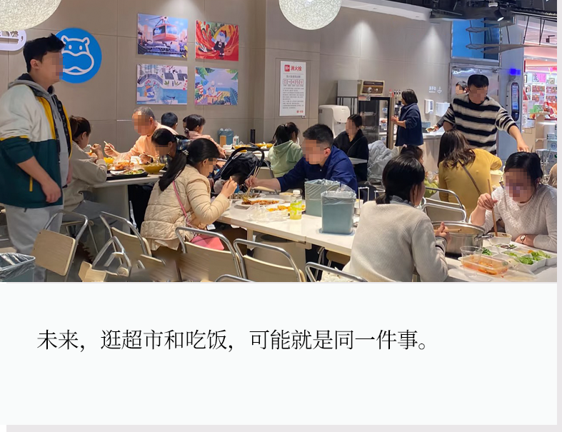 过去,超市的主业就是卖商品,餐饮区顶多算个配角:摆几个档口、卖点熟食,目的无非是延长顾客停留时间,顺带带来点连带消费。