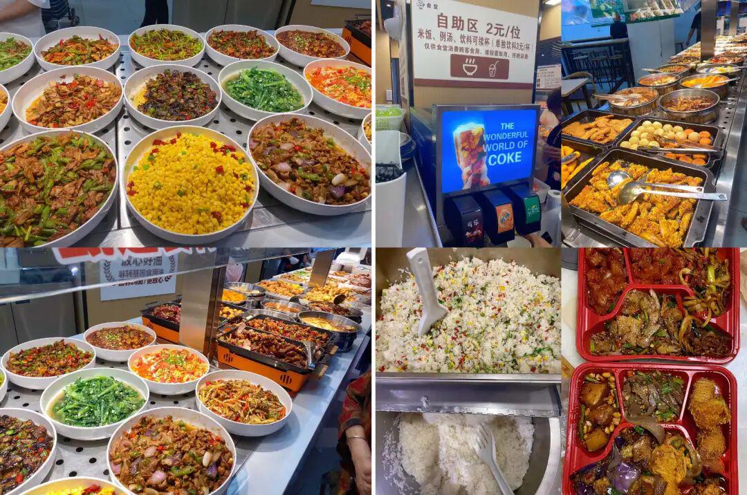 左侧进门是“邻里食堂”,主打“新鲜”、“安全”和“实惠”,所有饭食现场制作,右侧进门可以看到“社区菜店”,挑菜、买菜一气呵成。