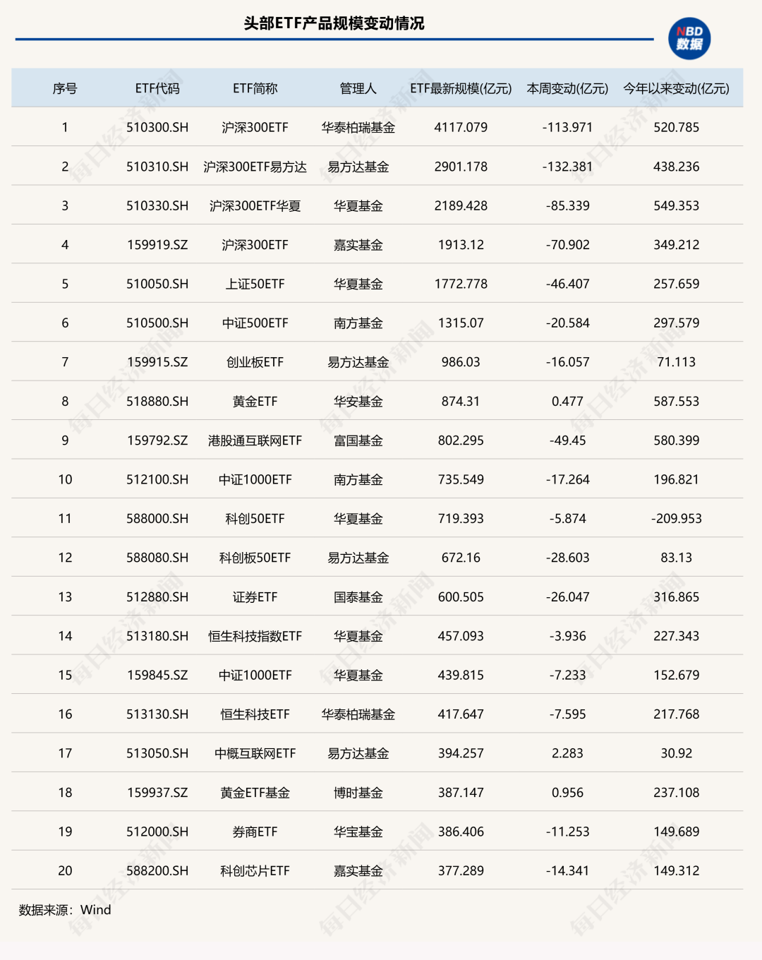 2只沪深300ETF本周规模缩水超100亿元