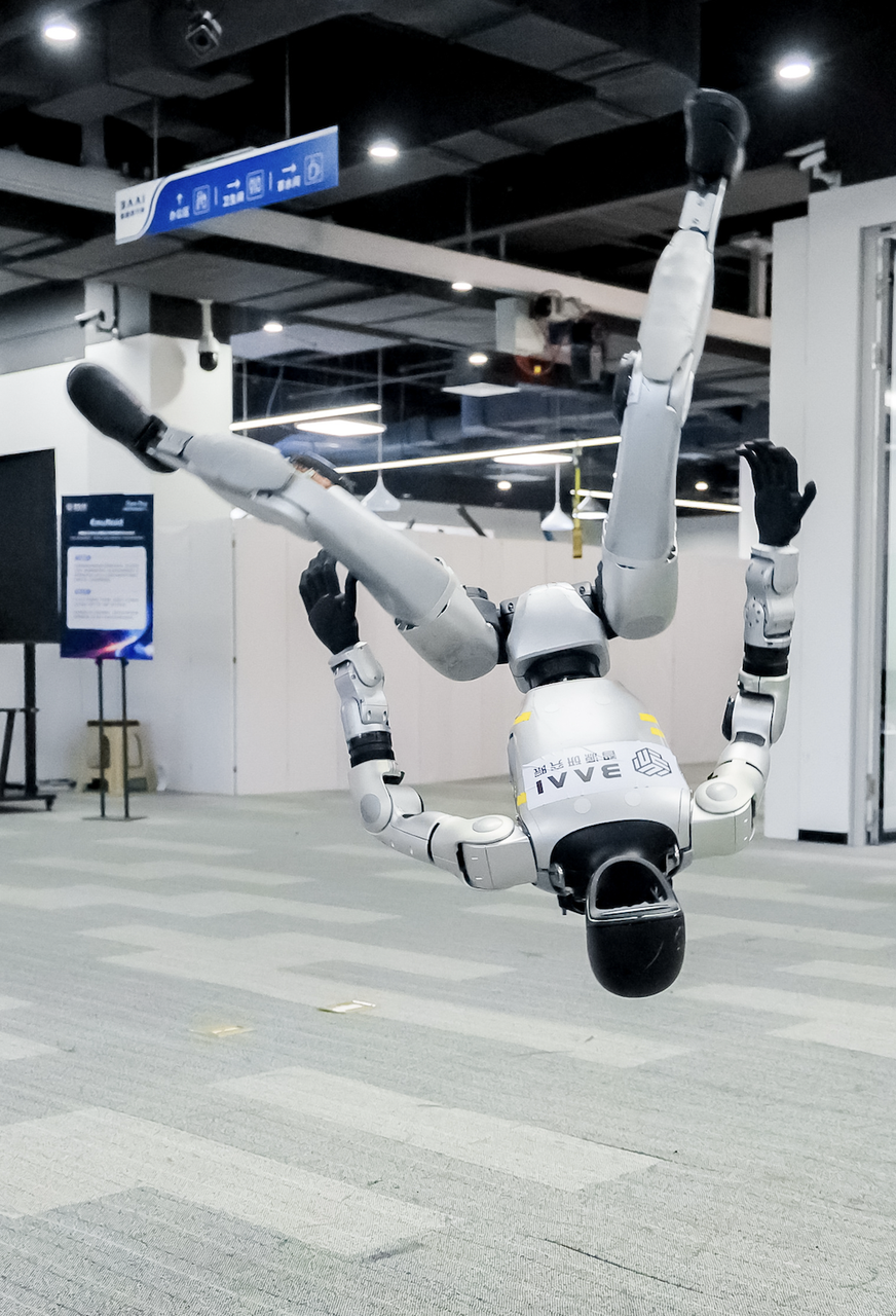 1、相较很多走路还在左脚绊右脚平地摔的人形机器人,智源家的这位可以说是“别人家的孩子”了——不仅能翻跟斗,还能一口气连翻二十个,稳稳完成这种连续、高动态的大幅度动作,小脑协调性强得惊人,机器人版《西游记》的猴哥得找它来演。