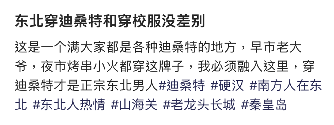 “不是乱推荐,如今走在东北街头,迪桑特都快变成东北省服了。”