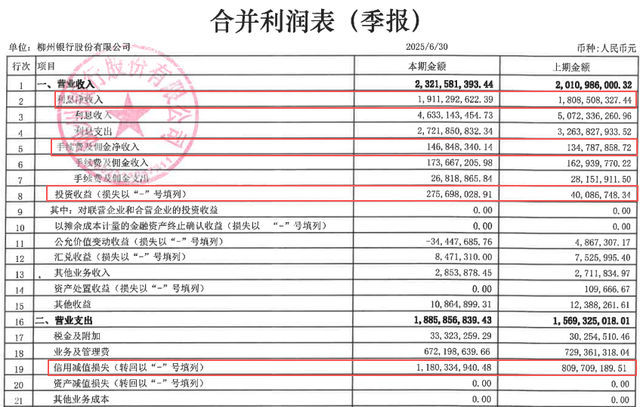整体来看,近两年柳州银行信用减值损失大幅上升,叠加市场利率持续下行带来的息差收窄压力,共同对盈利水平造成了负面影响。不过由于负债端成本控制良好,存贷款规模稳健增长,利息净收入实现增长,投资收益更是表现亮眼,成为拉动业绩增长的核心驱动力,共同推动今年上半年营收、净利双增长。