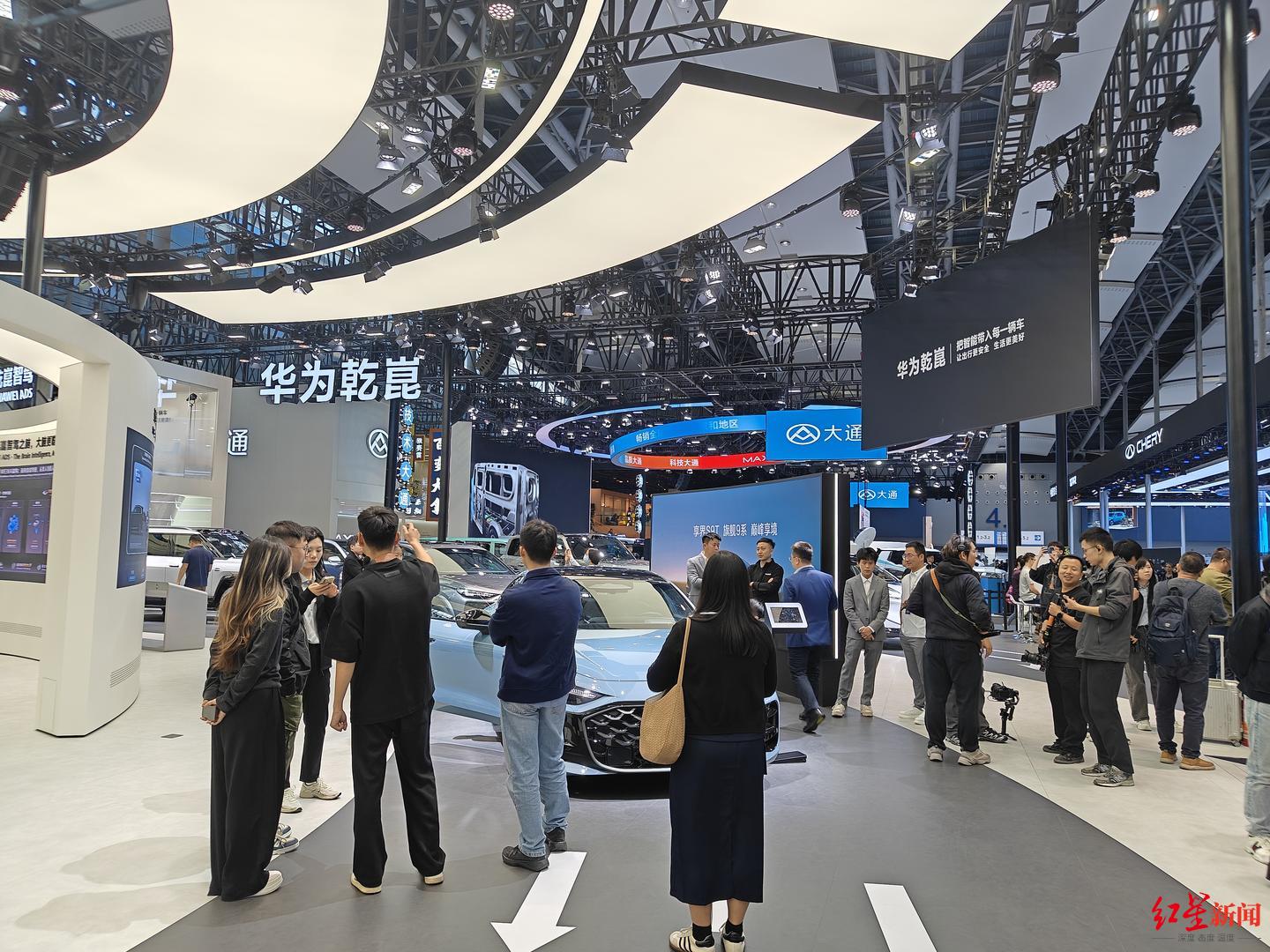 华为也是本届广州车展的主角之一。智能汽车解决方案品牌华为乾崑作为独立展商参展,鸿蒙智行占了三分之一个馆,“五界”均有独立的展台。华为乾崑还作为智驾、智能座舱供应商出现在一些车企的发布会及展台上。