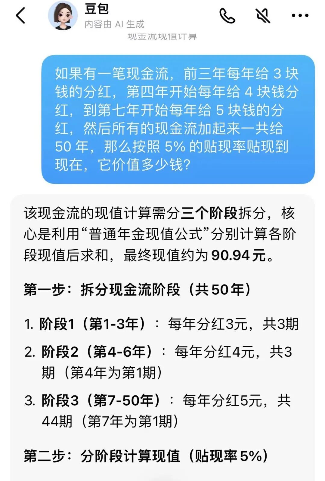 有了AI后,我可以直接提问。它洋洋洒洒给我算了一大堆——