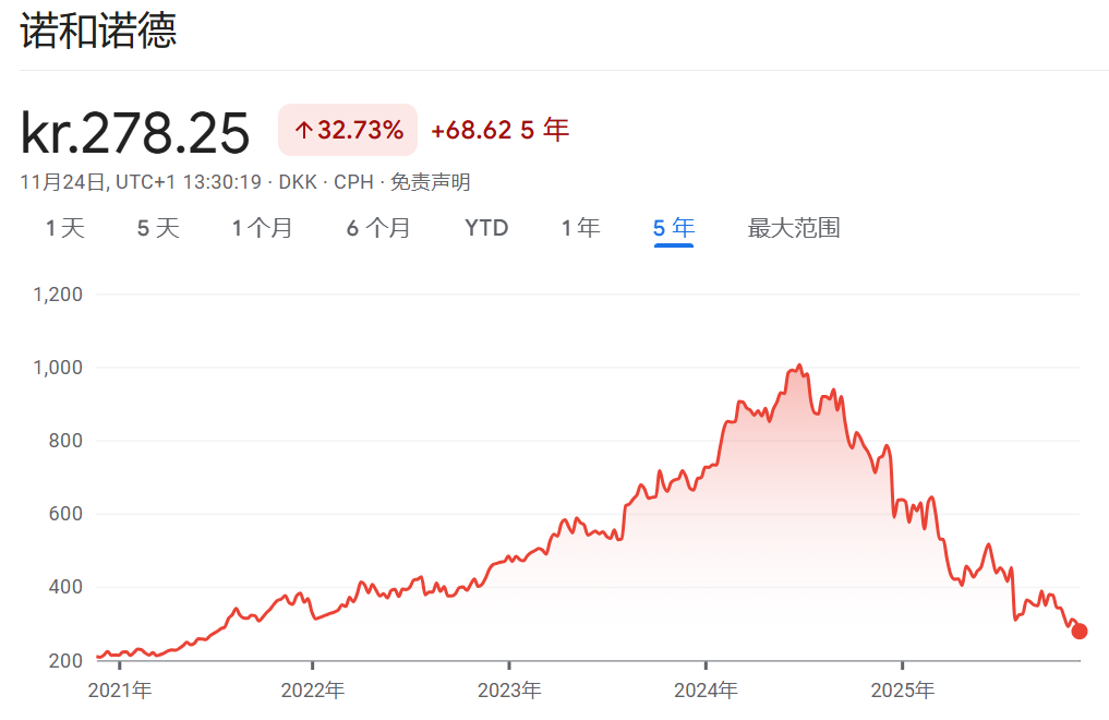 诺和诺德股价已从2024年峰值下跌73%,反映出投资者对该公司在其帮助创建的肥胖症治疗市场中长期竞争地位的担忧情绪持续升温。