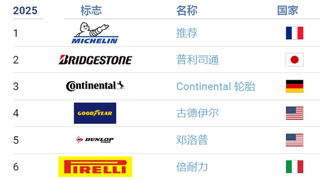 亚洲排名第一的轮胎品牌,是日本的普利司通,2025年度的品牌价值为82.53亿美元。普利司通和米其林(87.63亿美元)的品牌价值相当,都是全球第3位德国马牌(39.04亿美元)的2倍多。
