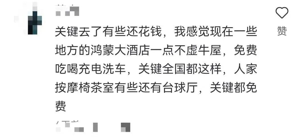 更有人在这些地方找到了人生的兜底方案。“失业了有鸿蒙大酒店兜底,别人假装上班还得到处找落脚点,我出门右转就能在4S店美美躺平。外面的世界充满变数,这里永远提供一杯热咖啡和一顿安心饭。”