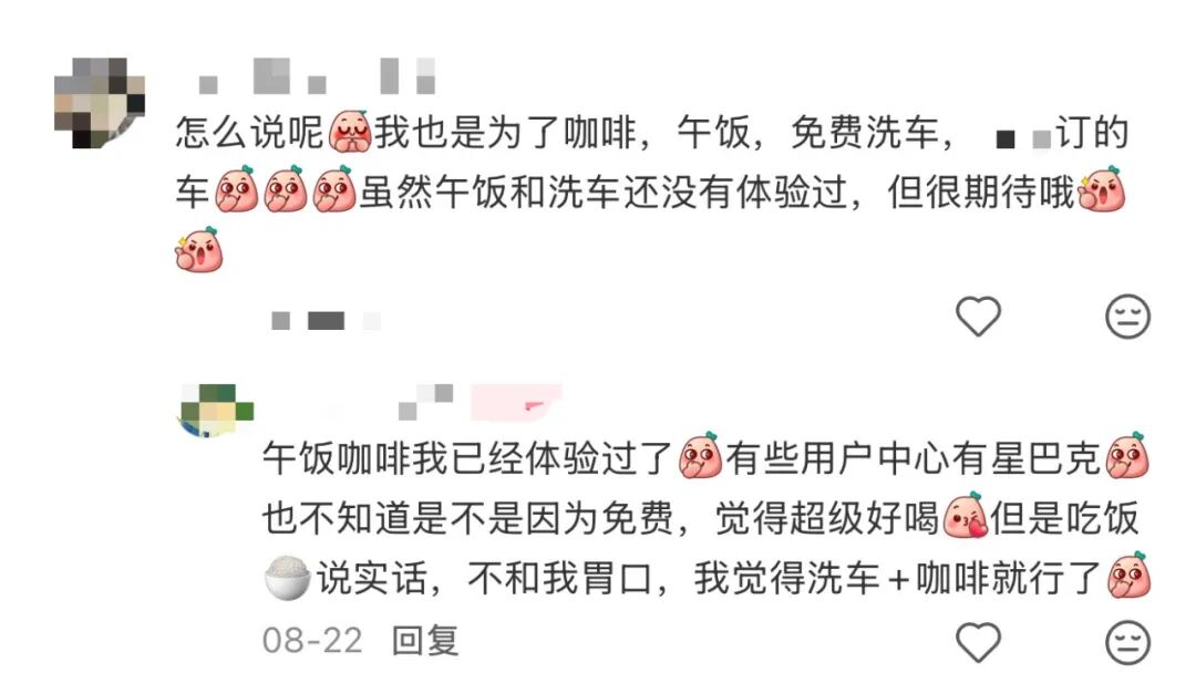 虽然油车4S店也管饭,但是只有保养的时候,才给你一张餐券,大姨打饭生怕你多吃,如今电车4S店则是生怕你吃不饱。“自助餐是标配,下午茶是基操,带孩子有游乐区,洗车充电全免费,就差没在前台挂上‘欢迎入住’的灯牌。”
