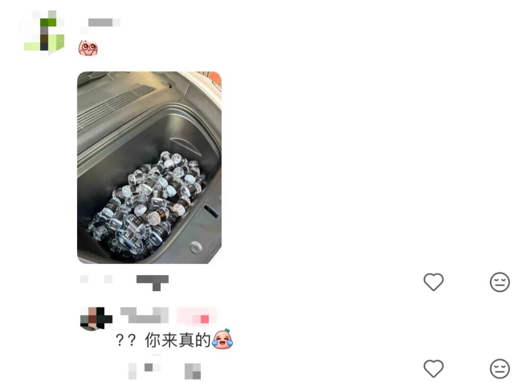 在这种情况下,即便是一向抠门的特斯拉,也不得不被爆改成了矿泉水超市,“虽然没有上台面的大餐,但无限量饮料随便挑,自由得像在自家冰箱前。”