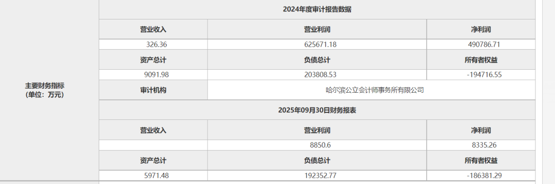 财务数据显示,哈飞汽车2024年的营业收入为326.36万元,净利润为49.08亿元;2025年前三季度,公司没有明确列出营业收入,净利润为8335.26万元。截至9月末,哈飞汽车的总资产为5971.48万元,所有者权益为-18.64亿元。