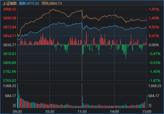全市场4300只个股上涨,95只个股涨停。沪深两市成交额1.81万亿元,较上一个交易日放量844亿。
