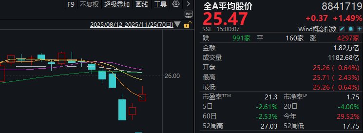 11月25日,市场震荡拉升,创业板指涨近2%,此前一度涨超3%。截至收盘,沪指涨0.87%,深成指涨1.53%,创业板指涨1.77%。