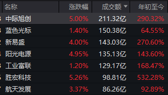 全市场成交额榜上,今天有5只股票达到了百亿成交,除阳光电源外,都是AI相关;再除去蓝色光标,另外3只都是AI硬件大票。