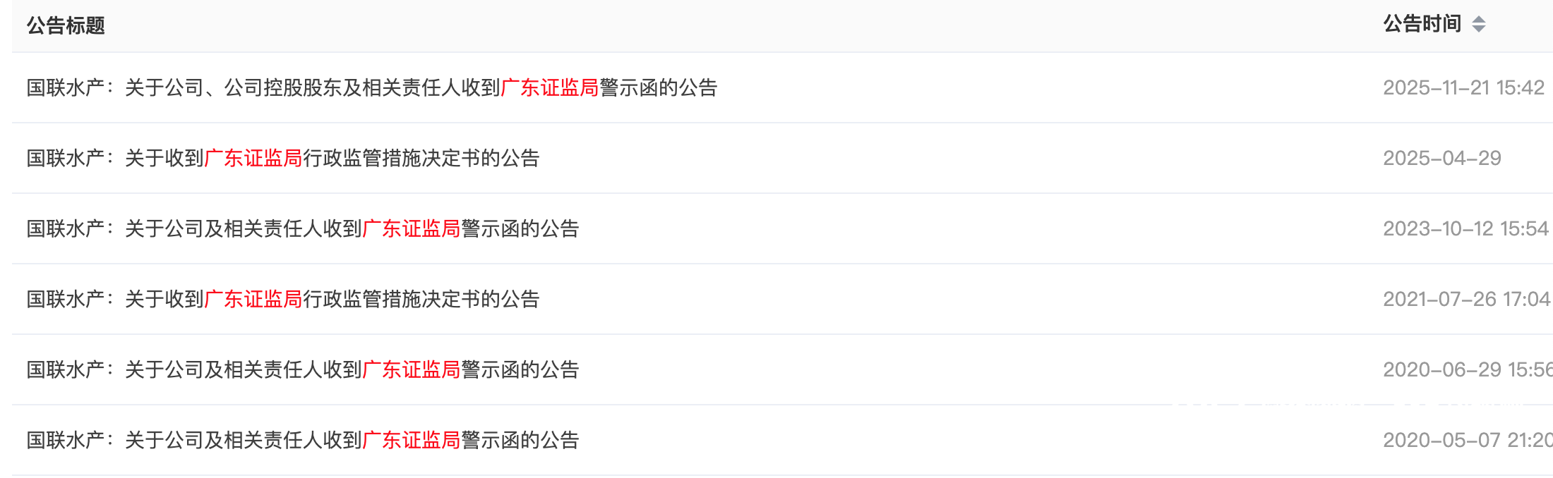 信息披露屡次违规,7个月时间,国联水产两次受到监管部门处分。