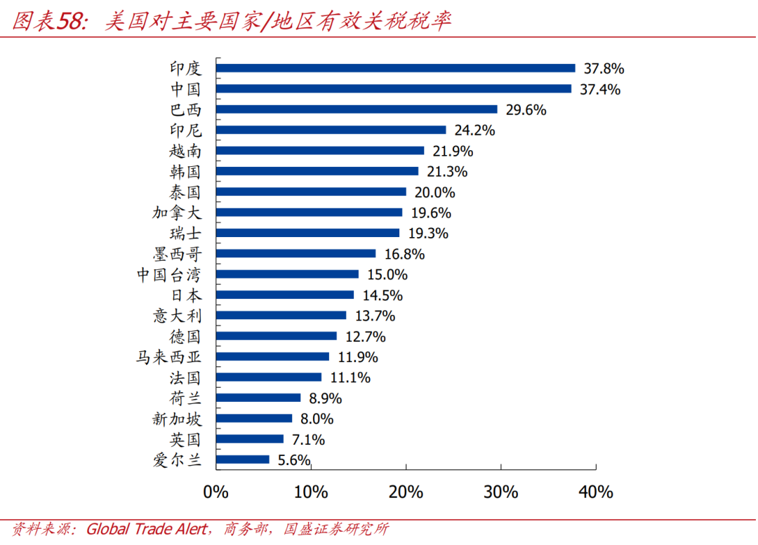 >对美出口额可能趋于稳定。对等关税宣布以来,我国对美出口同比降幅接近三成。10月30日,中美最高领导人会晤,特朗普将针对中国的关税下调10%,下调后美国对我国关税税率降至37.4%左右,2025年新增部分约26.5%,与越南、印尼等国新增关税基本相当,后续我国对美出口可能有所修复,2026年Q2起对美出口同比读数可能回正。