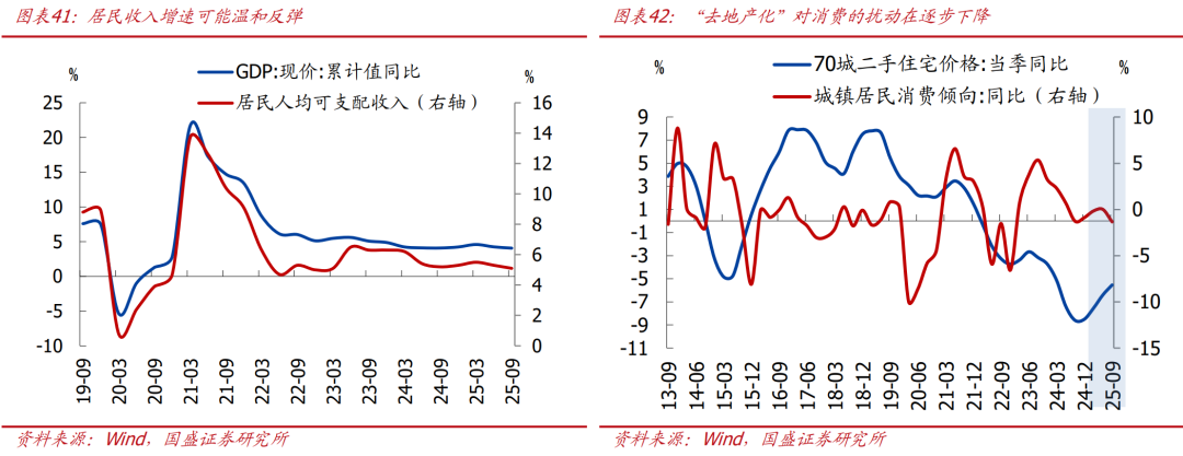 >考虑名义GDP温和回升和“十五五”规划强调优化分配机制的影响,预计2026年居民收入增速温和回升,有助于推动消费温和回升。