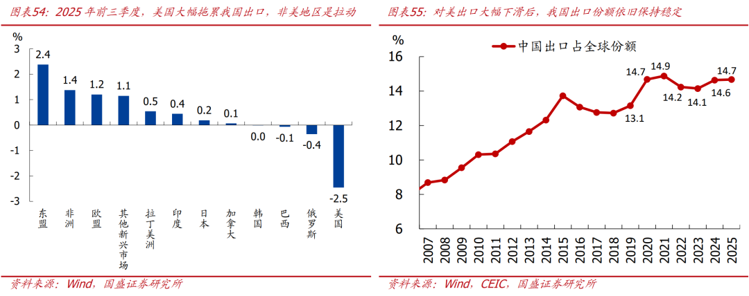 >外需看,2025年以来,虽然美国对我国关税大幅提升,但出口持续超预期,除了转出口、抢出口等因素影响,更根本的是我国制造业的国际竞争优势较强,叠加海外经济复苏,预计将继续支撑我国未来一段时期的出口。