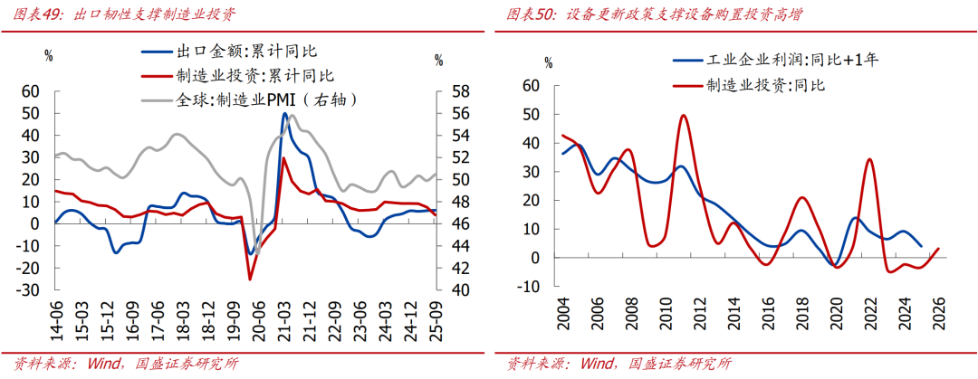 四季度至2026年,制造业投资可能企稳小幅回升。一方面,出口韧性、企业盈利回升、设备更新政策等可能支持制造业投资逐步企稳回升。另一方面,“反内卷”政策带动行业竞争格局改变,随着竞争格局的改善,企业有望进一步拓展资本开支。另外,外商直接投资同比也已经在2025年触底,开始逐步改善,也有助于制造业投资提升。