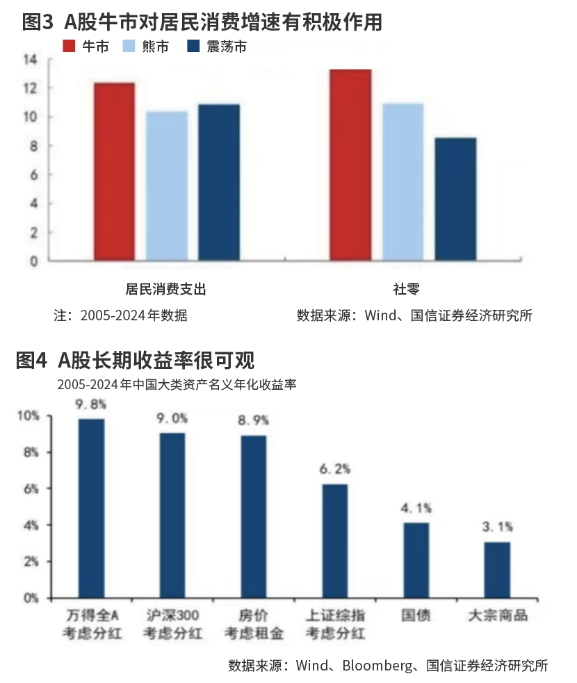 资本市场一头连接企业投资端,一头连接居民财富端,资本市场的健康繁荣发展,将会通过财富效应助力提升居民消费率。
