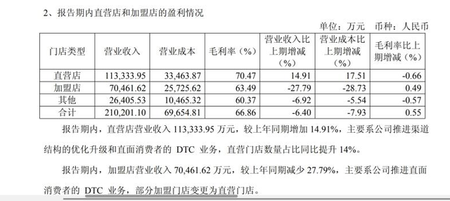 国信证券研报指出,2024 年受宏观消费疲弱、以及公司渠道变革影响,加盟店数量和单店收入下滑,拖累整体表现,但同时直营渠道持续开店、单店收入保持正向增长,看好公司渠道调整优化后直营渠道拉动收入增长,同时直营毛利率更高带动公司整体毛利率提升,费用率有望在销售增长恢复、渠道调整放缓、店效不断爬升后不断优化,看好未来公司盈利恢复弹性。