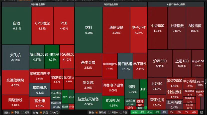 11月25日,A股延续反弹模式,高开高走,市场信心有所提振。创业板指涨近2%,共计4300只个股收涨,光通信模块等科技股表现亮眼,日成交额微增至1.83万亿元。