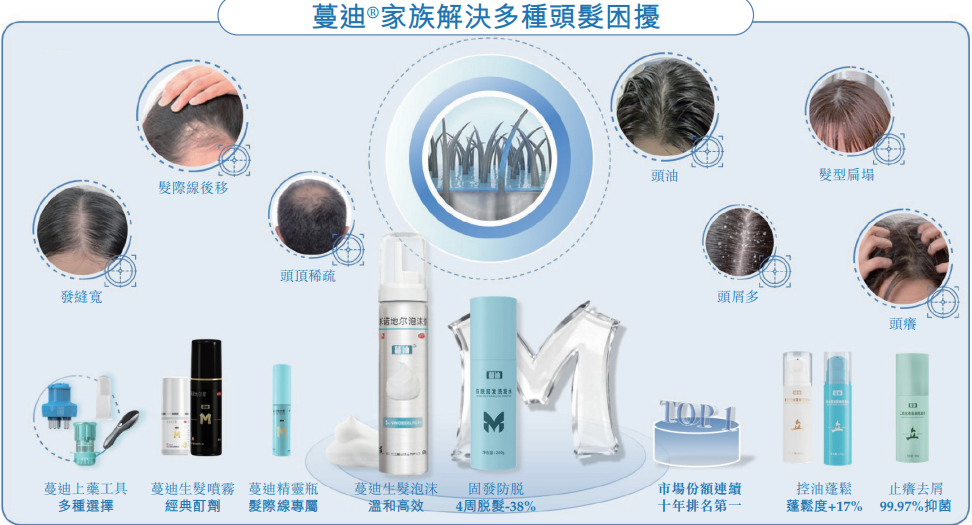 除了OTC产品,蔓迪产品线还延伸至功能性洗护。