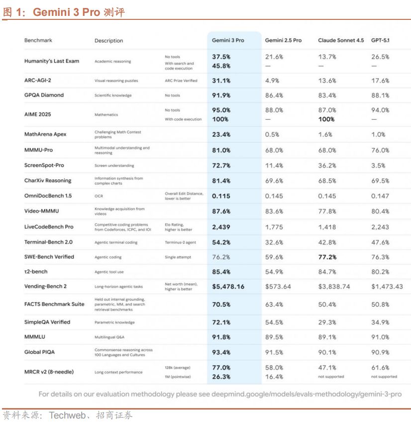 Gemini 3 Pro在应用场景上扩展至文字、图片、音频、视频以及代码等多种数据类型。长上下文处理能力也大幅提升,能够拥有高达百万Token的上下文窗口,可以一次性读入复杂学术论文、长视频等。该模型在多模态能力、物理模拟、氛围编程等领域全面超越GPT-5.1,创下多项基准测试新高。