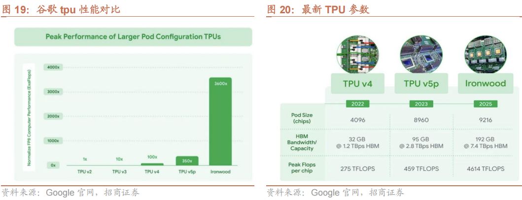 2015年,谷歌发布第一代TPU。近期,谷歌已正式发布并即将上市其第七代TPU芯片Ironwood。据官方数据,该芯片在训练和推理工作负载下的性能相比前代提升约4倍。