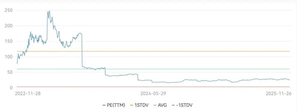 亚朵近三年PE(TTM) 图源:Wind
