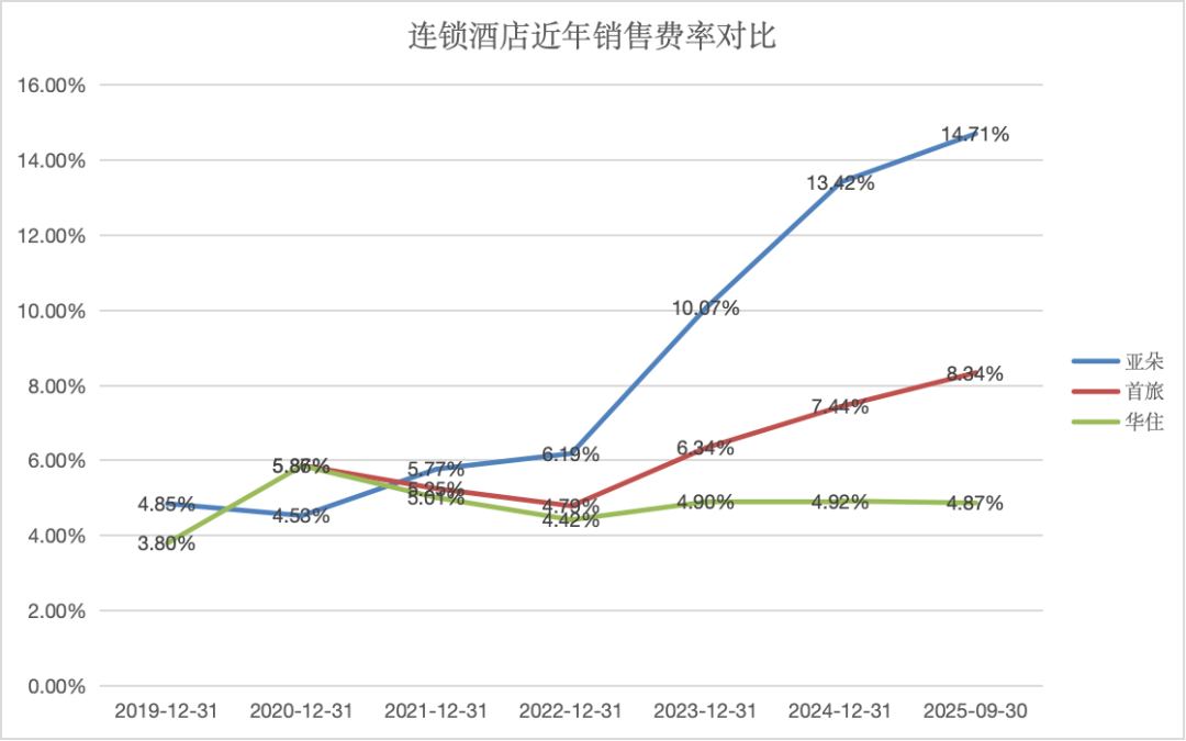 2025年前三季度,亚朵实现零售收入25.05亿元,同比大幅增长74.81%,营收贡献比进一步提升至35.78%。同时,其销售和市场营销费用开支也大幅增加。