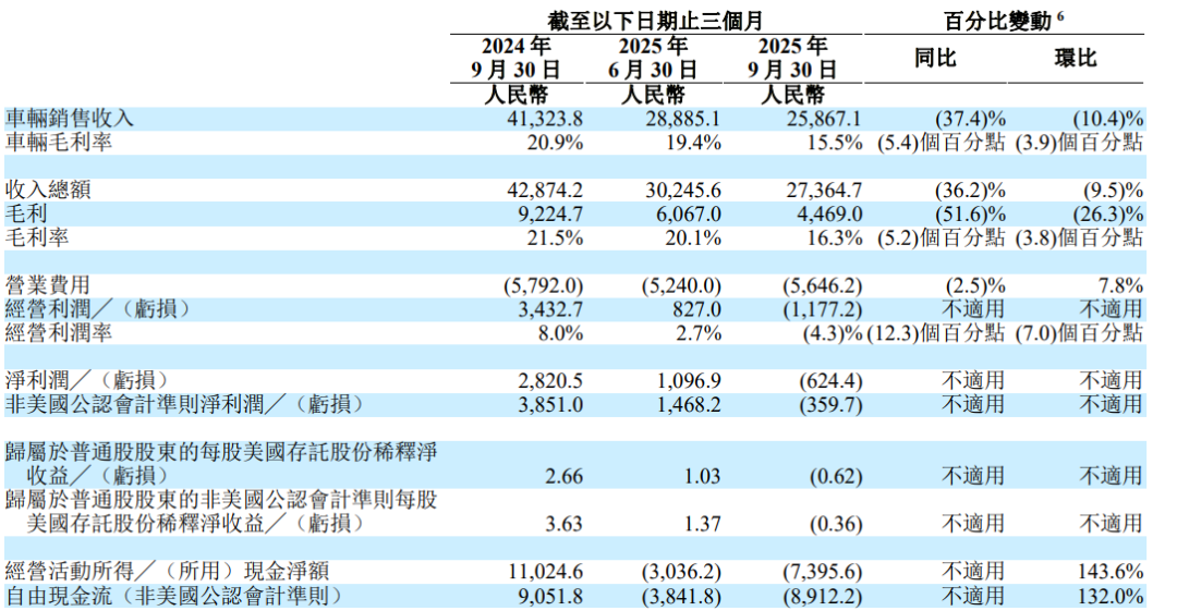 财报披露,理想汽车第三季度营收约274亿元,相较于2024年同期的429亿元,同比大幅下滑36.2%;环比亦减少。