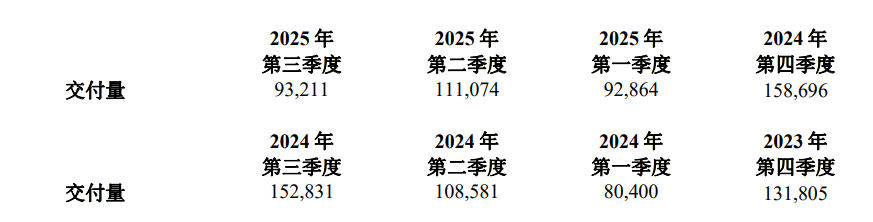 营收的下跌在于销量萎缩。三季度,理想汽车总交付量为93,211辆,而去年同期这一数字为152,831辆,同比锐减39.0%。