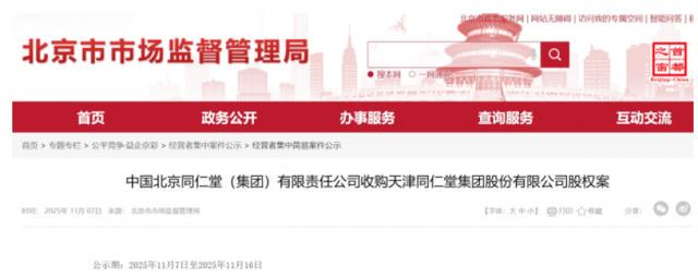 据市场监管总局2025 年 11 月公示的经营者集中简易案件信息,此次股权交易通过特殊的财产份额转让模式实现。交易前,北京同仁堂集团与杭州信达华屹投资管理有限公司通过杭州信康管理咨询合伙企业(有限合伙)共同控制天津同仁堂;交易过程中,北京同仁堂集团从杭州信康退伙,后者以所持天津同仁堂 60% 股份作为实物资产,向北京同仁堂集团退还财产份额。交易完成后,北京同仁堂集团将直接持有这部分股份,实现对天津同仁堂的单独控制。