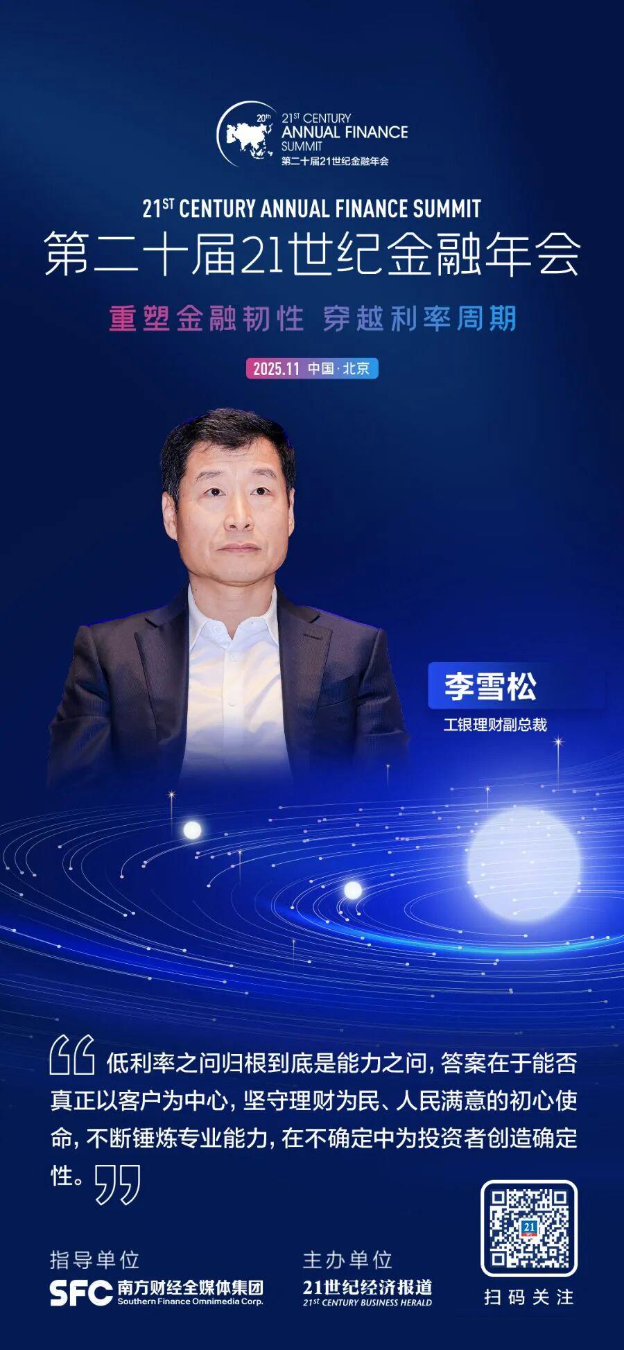 11月22日,由南方财经全媒体集团指导、21世纪经济报道主办的“第二十届21世纪金融年会”,在北京盛大召开。多位重磅嘉宾出席主题论坛二,共答财富管理的低利率之问。