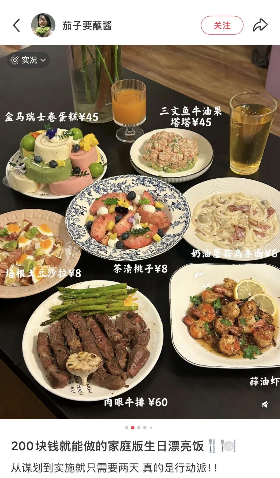 有网友开始选择自制漂亮饭,煎上几片牛排,煮上奶油乌冬面,再搭配山姆的小蛋糕,一顿饭下来只需要200元。