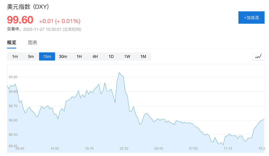 随着市场对美联储降息预期持续升温,加之投资者对人工智能泡沫担忧引发的抛售潮暂告段落,全球股市普遍回升,主要股指已接近收复11月全部跌幅,美元指数则相应走软。