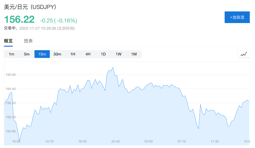 日本首相高市早苗口头干预后,日元仍疲软,日元兑美元报156.22。
