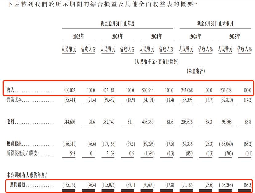 2022年至2025年上半年间,公司分别录得亏损1.86亿元、1.75亿元、9069万元和1.58亿元,累计亏损额达6.1亿元。
