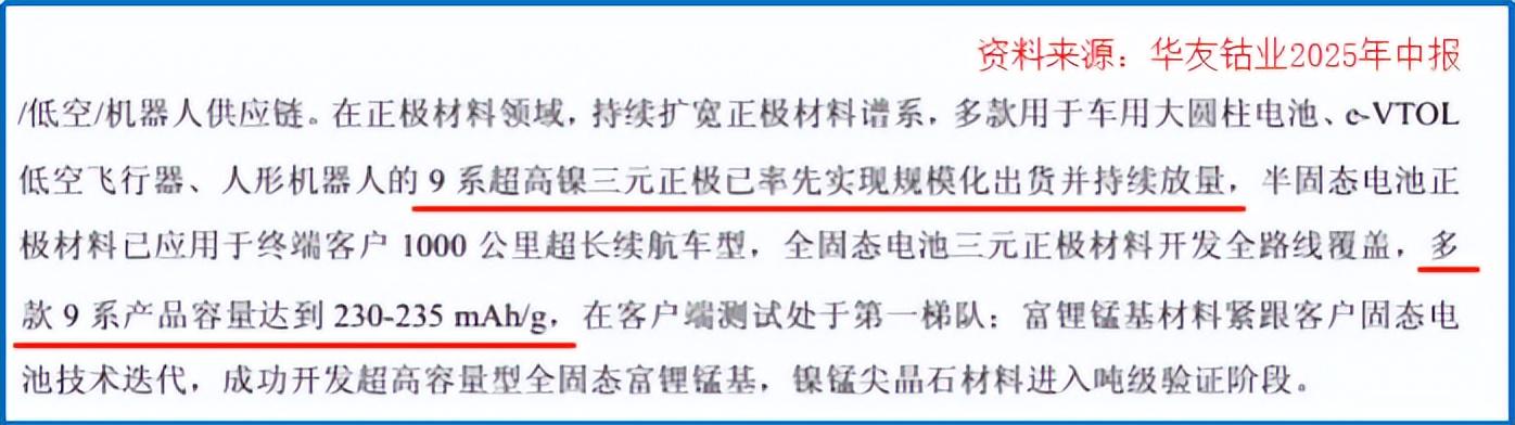 目前,华友钴业多款9系超高镍产品容量已达230-235 mAh/g,并在车用大圆柱电池、e-VTOL低空飞行器、人形机器人等领域率先实现规模化出货。